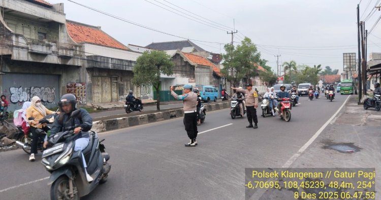 Cirebon – rutinitas pada pagi hari yang dilakukan oleh anggota Polsek Klangenan Polresta Cirebon diantaranya ialah melakukan pengaturan lalu lintas, guna memberikan pelayanan kepada anak pelajar, karyawan pabrik dan. masyarakat agar merasa aman dan nyaman baik dalam berkendara maupun pada saat menyeberang jalan, selain itu juga untuk meminimalisir terjadinya kemacetan dan kecelakaan, selalu mengingatkan agar memakai helm dalam berlalulintas di U turn Telkom dan UTurn Lebak Jamblang. Senin (08/12/2025)