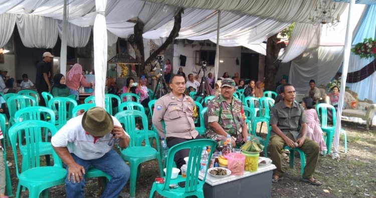 Cirebon - (03/12) Bhabinkamtibmas Polsek Klangenan Polresta Cirebon Bripka Uci Muhaeri bersama Babinsa malaksanakan pengamanan Organ tunggal dalam rangka Hajatan Warga di Blok Buntalan Desa Orimalang Kecamatan Jamblang.
