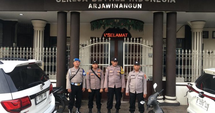 Cirebon - Anggota Polsek Arjawinangun Polresta Cirebon yang langsung di pimpin oleh Piket Pawas Iptu Iscahyadi SH melaksanakan kegiatan pengamanan Kebaktian di gereja GBI Arjawinangun yang berlokasi di jalan kantor Pos Arjawinangun.