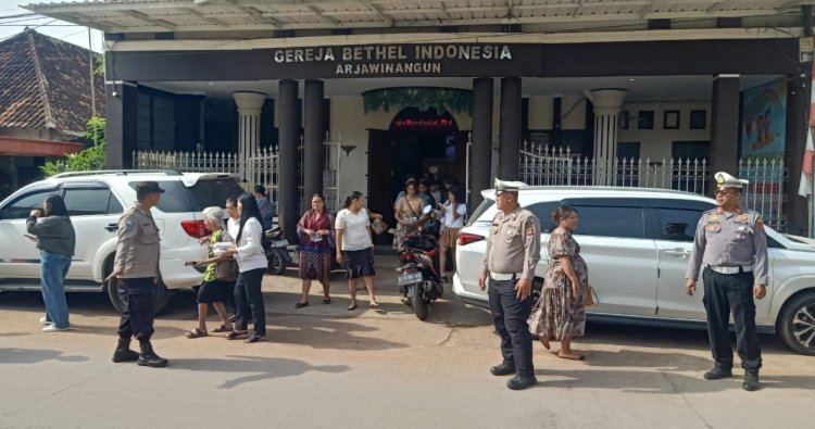 Cirebon - Tercipta Kamtibmas yang kondusif khususnya di Wilayah hukum Polsek Arjawinangun Polresta Cirebon Polda Jabar, anggota Polsek Arjawinangun yang di pimpin oleh piket Pawas Iptu Yanto melaksanakan kegiatan rutin yaitu pengamanan Kebaktian pagi yang bertempat di Gereja Bethel Indonesia ( GBI ) Arjawinangun.Kegiatan pengamanan tersebut bertujuan guna memberikan rasa aman dan nyaman kepada umat Nasrani yang sedang melaksanakan ibadah kebaktian.Oleh karena itu Polsek Arjawinangun hadir dalam pengamanan kegiatan tersebut tersebut sampai dengan selesai dan memastikan berjalan dengan aman kondusif, selain itu Anggota juga melaksanakan pengaturan arus lalin guna mencegah adanya kemacetan lalin saat bubaran kegiatan tersebut. Minggu, 02/11/2025 Kapolsek Arjawinangun Polresta Cirlrebon Kompol Sumairi SH, M.Si mengatakan sudah menjadi kegiatan rutin di hari Minggu pagi maupun malam hari Anggota Polsek Arjawinangun melaksanakan pengamanan Kebaktian di Gereja GBI Arjawinangun yang mana tujuannya guna memberikan rasa aman dan nyaman kepada umat Nasrani yang sedang melaksanakan ibadah, harapan daripada Kapolsek Arjawinangun dalam kegiatan tersebut dapat berjalan dengan lancar.
