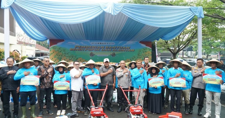 Dalam rangka mendukung program swasembada pangan nasional tahun 2026, Kepala Kepolisian Daerah Jawa Barat Irjen Pol. Dr. Rudi Setiawan, S.I.K., S.H., M.H. memimpin kegiatan penyerahan bantuan alat dan sarana pertanian kepada kelompok tani, Kamis (29/1/2026). Kegiatan ini dirangkaikan dengan penanaman jagung serentak yang dilaksanakan di seluruh Polres jajaran Polda Jawa Barat sebagai bentuk dukungan Polri terhadap penguatan ketahanan pangan nasional. Dalam kegiatan tersebut, Kapolda Jawa Barat menyerahkan secara simbolis berbagai bantuan alat dan sarana pertanian (alsintan) guna meningkatkan produktivitas pertanian serta kesejahteraan petani. Adapun bantuan yang disalurkan meliputiBenih jagung sebanyak 500 kilogram, Pupuk NPK 4 ton, Pupuk Urea 2 ton, Pupuk Pak Bhabin 4 ton, Pestisida 50 botol, Mesin pipil jagung 2 unit, Sprayer 3 unit, Hand traktor 2 unit, Mesin babat rumput 5 unit serta bantuan paket sembako Kapolda Jabar menyampaikan bahwa kegiatan ini merupakan bentuk komitmen Polri dalam mendukung sektor pertanian sebagai salah satu pilar utama ketahanan pangan. “Penyerahan bantuan alat dan sarana pertanian ini diharapkan dapat membantu meningkatkan hasil produksi jagung serta memperkuat ketahanan pangan di Jawa Barat dalam rangka mewujudkan swasembada pangan nasional tahun 2026, ” ujarnya, Jum'at (30/1/2026) Melalui sinergi antara Polri, pemerintah daerah, dan kelompok tani, diharapkan program swasembada pangan dapat berjalan optimal dan memberikan manfaat nyata bagi masyarakat.