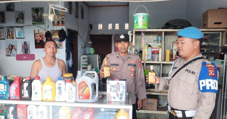 Petugas Patroli Polsek Susukan Polresta Cirebon yang di pimpin langsung Kapolsek Susukan IPTU KELANI SH bersama anggota Polsek Susukan . berhasil mengamankan 3 botol miras pabrikan di warung milik Pidyani Desa kedongdong Kecamatan Susukan Kabupaten Cirebon.