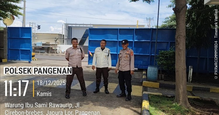 Cirebon - Kapolsek Pangenan AKP Abdul Majid, S.H., M.H. melalui anggota Unit Binmas Polsek Pangenan memberikan himbauan Kamtibmas kepada petugas keamanan perusahaan yang ada di Wilayah Hukum Polsek Pangenan. Polsek Pangenan menyampaikan himbauan pada saat Menjelang perayaan Natal dan Tahun Baru nanti agar petugas keamanan yang bertugas agar lebih waspada dan berhati-hati dalam menjaga keamanan perusahaannya. segera antisipasi segala potensi yang dapat menimbulkan kerawanan dan segera koordinasi dengan Polsek Pangenan apabila terjadi gangguan Kamtibmas.(18/12/2025)