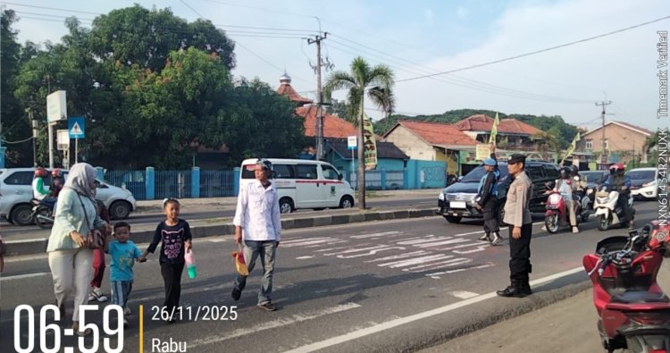 Cirebon - Rabu (26/11/2025) Personil Polsek Plered melaksanakan PH Pagi di Jalur utama Pantura Palimanan - Cirebon termasuk wilayah hukum Polsek Plered Kecamatan Plered Kabupaten Cirebon.