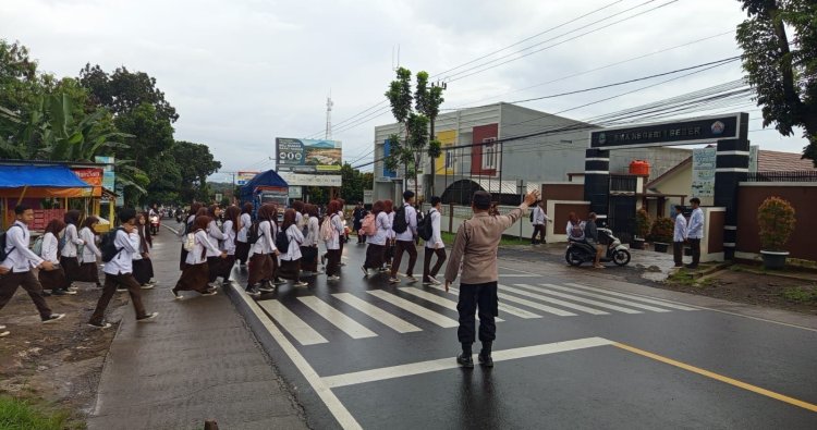 Selain mengatur arus lalu lintas, Aiptu Dodi S. juga tampak membantu para siswa SMAN 1 Beber saat menyeberang jalan. Sikap humanis tersebut menjadi bagian dari upaya Polri dalam membangun kedekatan serta meningkatkan kepercayaan publik melalui pelayanan langsung di lapangan.