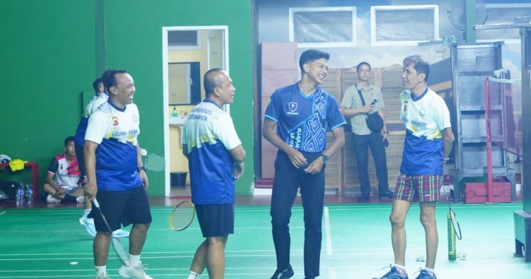 Pertandingan bulu tangkis yang berlangsung pada Kamis (23/4/2026) sore itu digelar di GOR Badminton Polda Jabar dan diikuti oleh Wakapolda serta para Pejabat Utama Polda Jabar. Suasana pertandingan berlangsung santai namun penuh keakraban.