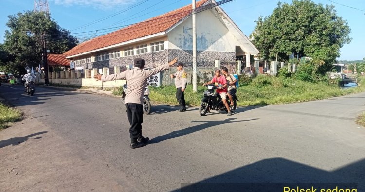 Cirebon - Kapolsek Sedong Polresta Cirebon bersama Anggota nya melaksanakan PH pengaturan lalu lintas pagi di pertigaan pasar Sedong Desa Sedong lor kecamatan Sedong Kabupaten Cirebon, pada pagi tadi jam 06.30 Wib.(5/12/2025).