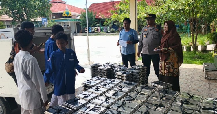 Adapun menu makan bergizi yang dibagikan terdiri dari nasi putih, ayam bakat, tahu bacem, timun dan kelengkeng.