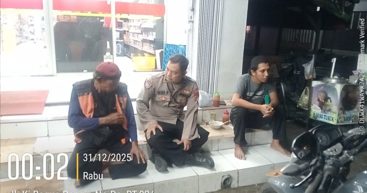 Cirebon - 31/12/2025 Bhabin Kamtibmas Aipda Dwi Priyanto SH melaksanakan kegiatan sambang warga yang sedang di minimarket