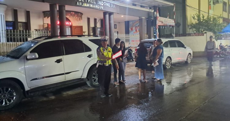 Arjawinangun — Dalam rangka pelaksanaan Operasi Lilin Lodaya 2025, personel Pos Pengamanan (Pos Pam) Jungjang Polresta Cirebon melaksanakan pengamanan dan pengaturan arus lalu lintas pada kegiatan ibadah kebaktian malam di Gereja Bethel Indonesia (GBI) Arjawinangun, Minggu (29/12/2025).