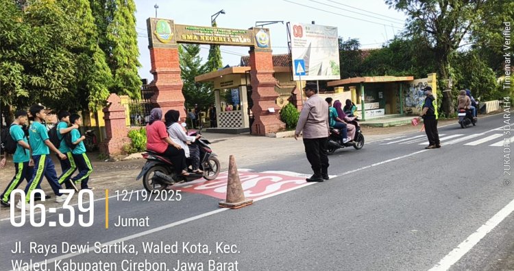 CIREBON – Mengawali aktivitas masyarakat di pagi hari, personel Polsek Waled melaksanakan giat Police Hazard (PH) pagi dan pengaturan arus lalu lintas di jalur utama Kecamatan Waled, Jumat (19/12/2025).