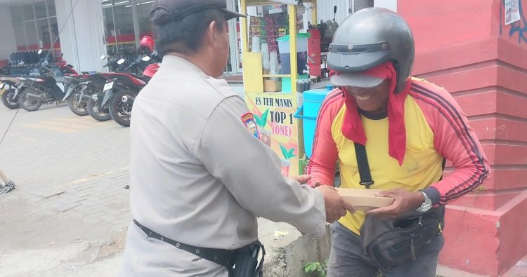 Dalam kegiatan berbagi tersebut Polsek Gebang memberikan nasi kotak, kepada warga di Desa Playangan Kecamatan Gebang.