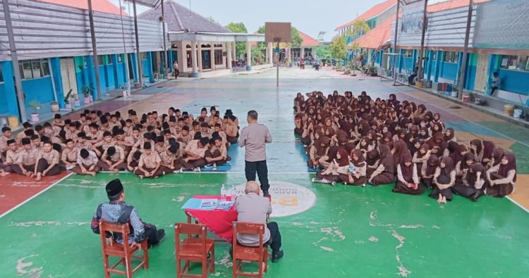 CIREBON - Kapolsek Dukupuntang AKP Nuryana bersama Kanit Binmas Polsek Dukupuntang Aipda Totong Sunarta, S.H melaksanakan kegiatan Police Goes To School di MTs Negeri 11 Cirebon termasuk Desa Cisaat Kecamatan Dukupuntang Kabupaten Cirebon.