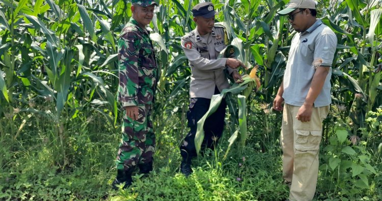 Dalam kegiatan tersebut, Aipda Sutarno bersama Babinsa dan Ketua BUMDes melakukan pemantauan langsung terhadap perkembangan tanaman jagung pipil guna memastikan program berjalan dengan baik dan sesuai harapan.