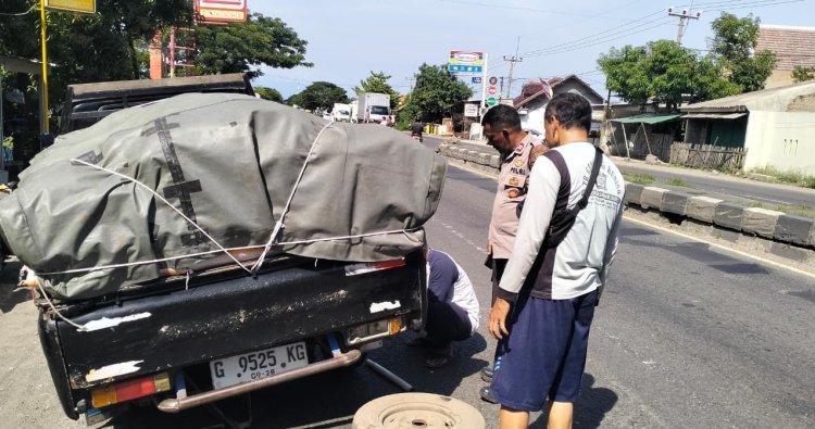 Kapolsek Gebang, AKP. Wawan Hermawan, S.H., yang sedang melaksanakan patroli bersama anggotanya, mendapati seorang warga yang kendaraannya mengalami pecah ban. Tanpa ragu, Kapolsek beserta anggota segera memberikan bantuan.