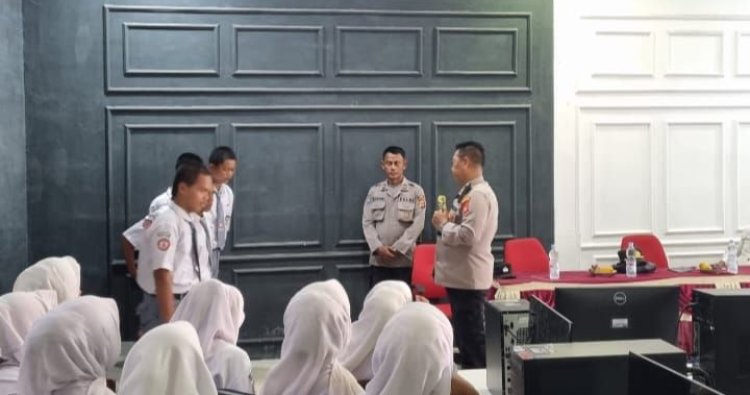CIREBON - Dalam kegiatan Police Goes To School di SMK NASYRUL ULUM JAGAPURA, Kapolsek Gegesik AKP SUHERYANA, SH didampingi Ps. Kanit Binmas Aipda Kadani dan Bhabinkamtibmas Bripka Rizky Grahatio melakukan Pembinaan Bahaya Kenakalan Remaja, berlalu lintas dijalan raya dan Ketentuan penggunaan kendaraan bermotor untuk tidak menggunakan Knalpot Debrong, Hindari Kekerasan di lingkungan Sekolah (Bullying), serta Jauhi obat-obatan terlarang dilingkungan sekolah.