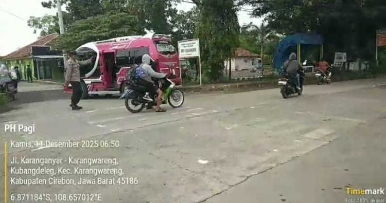 CIREBON – Polsek Karangsembung Polresta Cirebon melaksanakan kegiatan Pengaturan dan Penjagaan (PH) pagi di depan SMPN 1 Karangwareng, Kecamatan Karangwareng, Kabupaten Cirebon, Kamis (11/12/2025). Kegiatan ini merupakan wujud kepedulian Polri dalam memberikan rasa aman dan mendukung kelancaran arus lalu lintas pada jam sibuk.