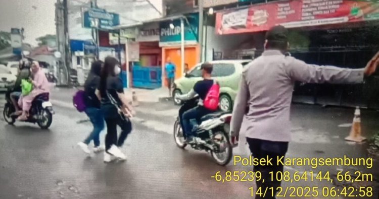 Cirebon - 14 Desember 2025.sebagai bentuk nyata kehadiran polri di tengah masyarakat khususnya dalam memberikan rasa aman dan tertib berlalulintas di pagi hari .polsek karangsembung melaksanakan kegiatan pelayanan laluluntas pagi di depan smp karangwareng kecamatan karangwareng kabupaten cirebon.pada hari minggu 14 desember 2025.