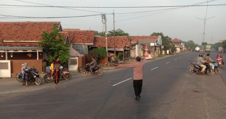 Cirebon — Personel Polsek Susukan Polresta Cirebon melaksanakan kegiatan Pengaturan dan Penjagaan (PH) Pagi di Perempatan Bunder, Desa Bunder, Kecamatan Susukan, Kabupaten Cirebon, yang merupakan wilayah hukum Polsek Susukan, pada pagi hari.