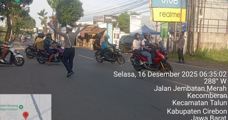 Personil Polsek Talun bersama personil Sat Lantas Polresta Cirebon melakukan PH pagi di jalur Jembatan Merah guna memperlancar arus lalu lintas.