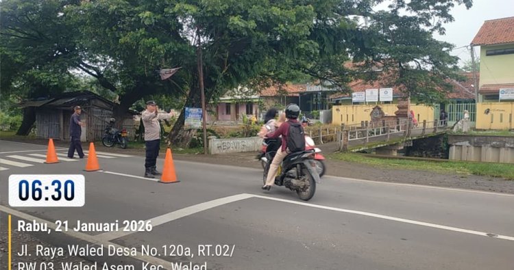 Dalam pelaksanaannya, personel Polsek Waled melakukan pengaturan arus kendaraan serta membantu penyeberangan para siswa dan pengguna jalan lainnya guna mencegah terjadinya kemacetan maupun kecelakaan lalu lintas.