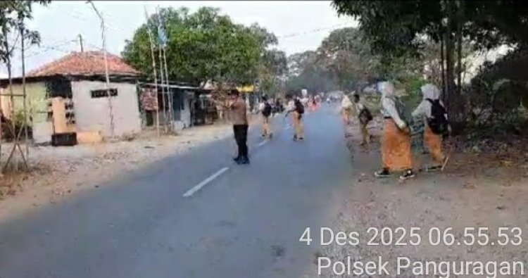 Rabu, 4/12/2025, Personil Polsek Panguragan Polresta Cirebon melaksanakan Gatur Lalu lintas pagi hari di Jalan Nyimas Gandasari tepat nya di Depan kantor Kec. Panguragan dan di depan Smp1 Kec. Panguragan Kab. Cirebon