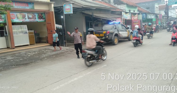 Jum'at, 5/12/2025, Personil Polsek Panguragan Polresta Cirebon melaksanakan Gatur Lalu lintas pagi hari di Jalan Nyimas Gandasari tepat nya di Depan kantor Kec. Panguragan dan di depan Smp1 Kec. Panguragan Kab. Cirebon