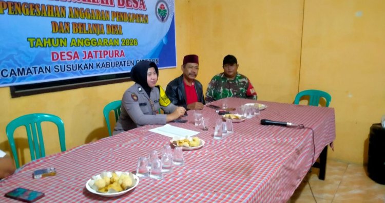 Susukan, Cirebon – Sinergitas TNI dan Polri kembali ditunjukkan melalui kehadiran Bhabinkamtibmas dan Babinsa dalam kegiatan Musyawarah Desa (Musdes) pengesahan Anggaran Pendapatan dan Belanja Desa (APBDes) Tahun Anggaran 2026 di Desa Jatipura, Kecamatan Susukan, Kabupaten Cirebon, Kamis (29/01/2026) malam.