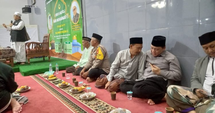 KAB. CIREBON – Aipda Supriadi, S.I.Kom. bersama dengan Sertu Ruhanto dari Koramil 0610-20/LA menghadiri kegiatan peringatan Isro Mi'roj di Masjid Al Mujahidin Desa Panambangan Kecamatan Sedong Kabupaten Sedong pada Selasa malam. (20/1/2025).