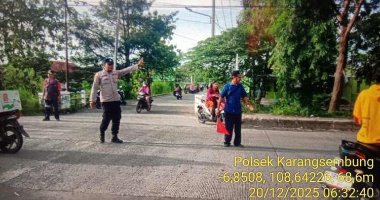 Dalam pelaksanaannya, personel Polsek Karangsembung melakukan pengaturan arus kendaraan dari dua arah serta membantu masyarakat dan para pelajar yang hendak menyeberang jalan, guna memastikan kelancaran dan keselamatan pengguna jalan.